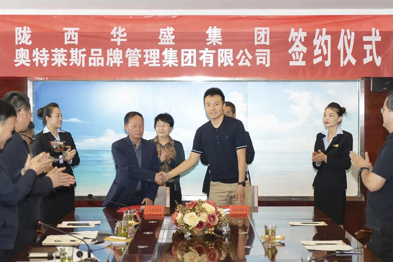奧特萊斯(中國)業(yè)務拓展中心總經理左祺與隴西華盛集團董事長柴彥章代表雙方公司簽署合作協(xié)議。