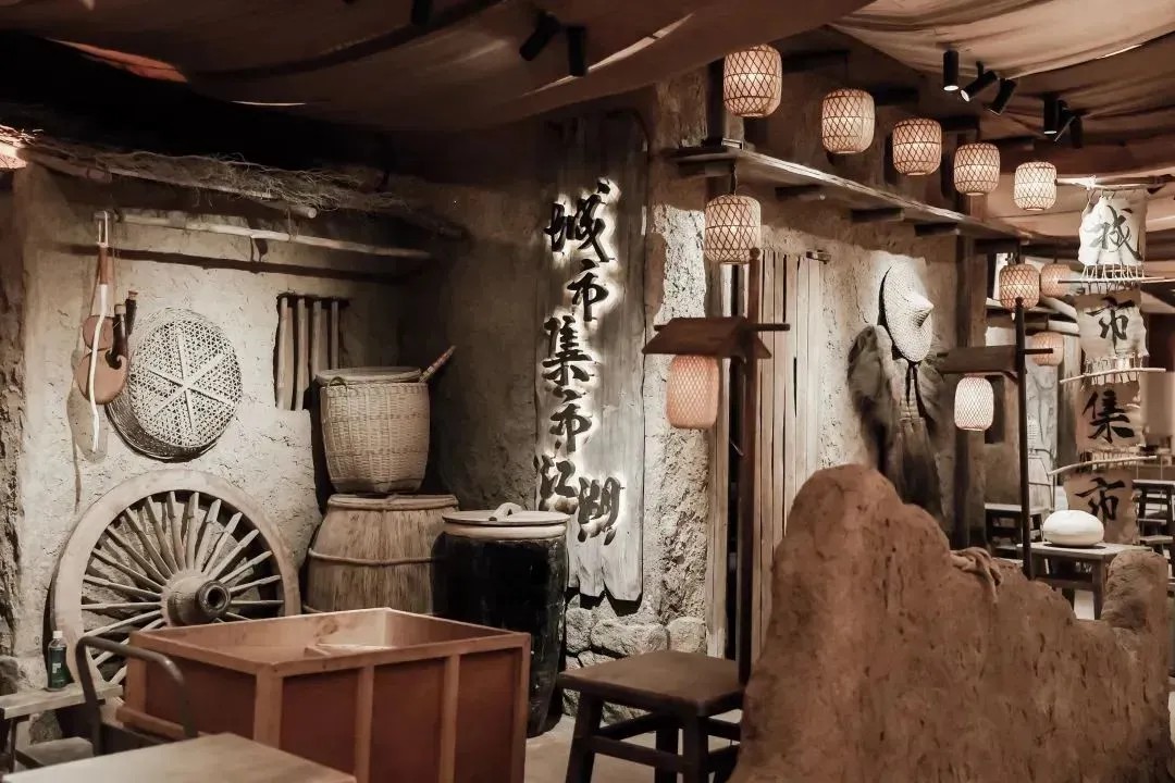 這里一草一木,一磚一瓦,基本上都還原了上世紀八十年代老長沙的建筑。在店內(nèi),有煙火氣息的老式磚樓鱗次櫛比,老舊的霓虹燈箱略帶昏暗地閃爍著,竹制的座椅被整齊的擺放。囊括了吃喝玩樂各個方面,隨便抓起一家都能勾起一堆人的青春回憶。
