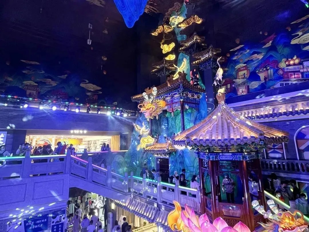 作為國內(nèi)首個“沉浸式文商旅綜合體”,“秦淮·戲院里”在秦淮文化的基礎(chǔ)上,抽取出奇市、燈山、幻戲的典型場景意向與文娛主題,將主題景觀、演藝內(nèi)容、商戶業(yè)態(tài)等有機融合在一起,努力為用戶帶來身臨其境的奇幻體驗。