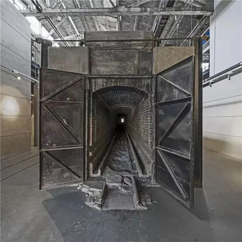 巨大的陶瓷燒煉車間建于1956年,是景德鎮(zhèn)宇宙瓷廠的主車間。廠房內(nèi)保留了古老的圓窯、1960年代的煤燒隧道窯和1990年代的汽燒隧道窯,這三種時期的窯爐不是得到簡單的保留,而是用它們組織了整個博物館的游覽路線。
