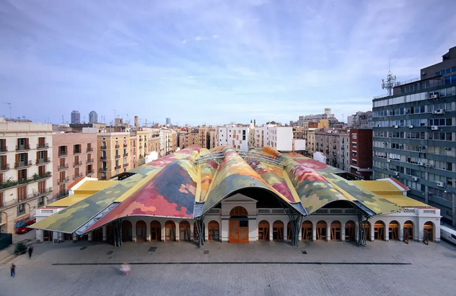 建于1848年的圣卡特琳娜市場(chǎng),是巴塞羅那第一座有屋頂?shù)牟耸袌?chǎng)。因時(shí)代變遷,地區(qū)環(huán)境質(zhì)量逐年惡化,街道狹窄、擁擠,缺少開放空間和服務(wù)設(shè)施,該市場(chǎng)慢慢得就不再符合現(xiàn)代生活使用,并于2005年進(jìn)行了翻新改造。